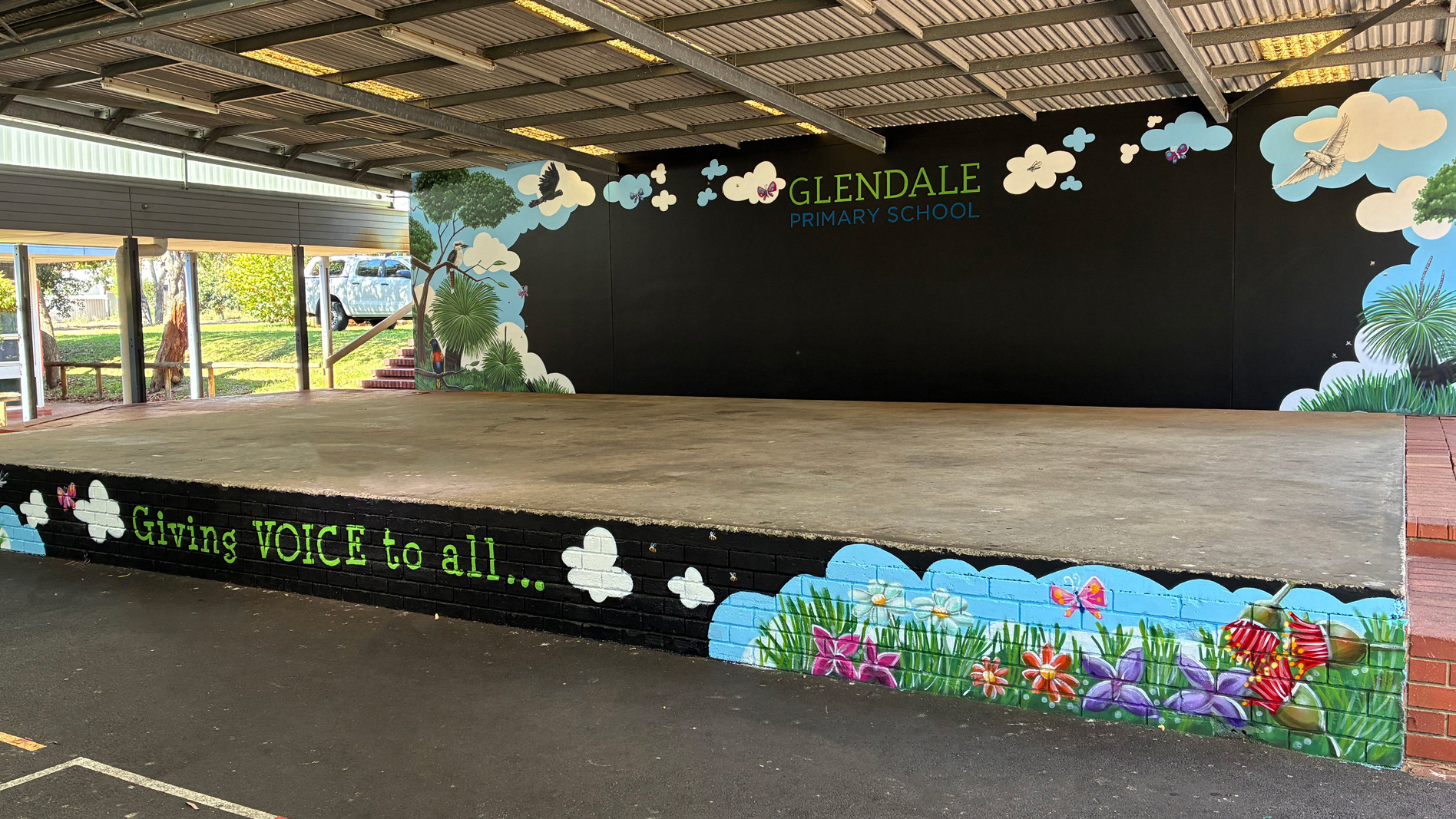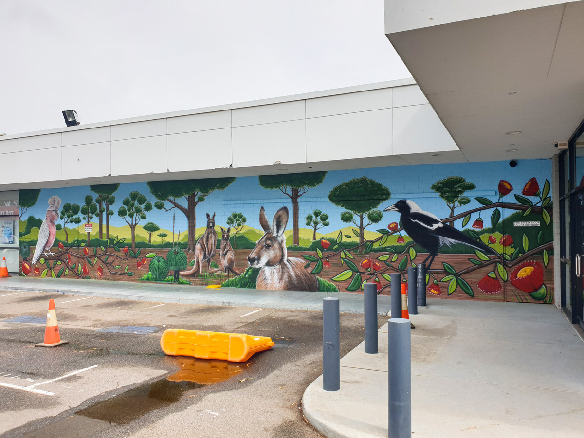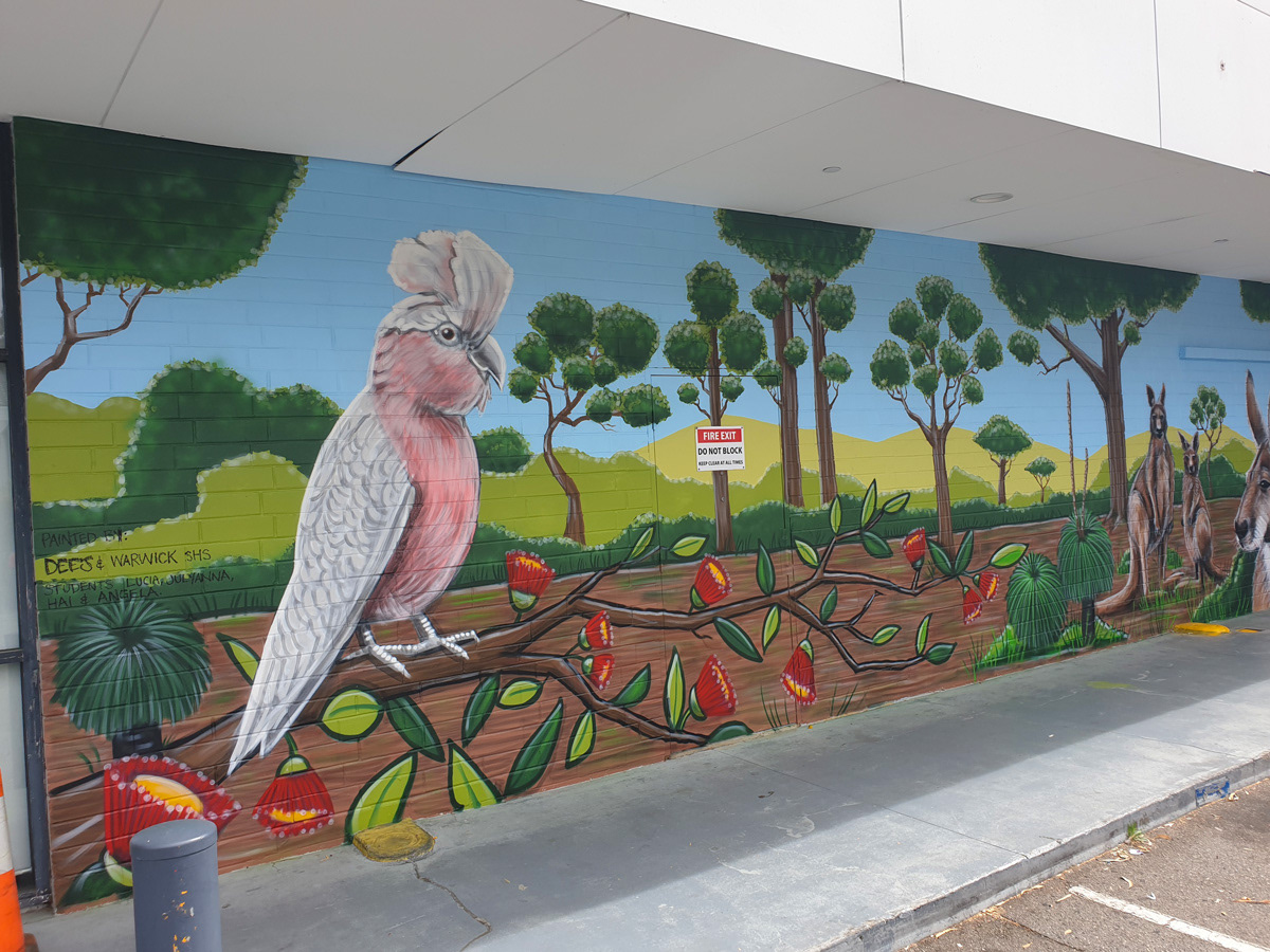 A mural I painted with students from Warwick SHS at Warwick Grove shopping centre. Done in a mix of brushwork and spray.