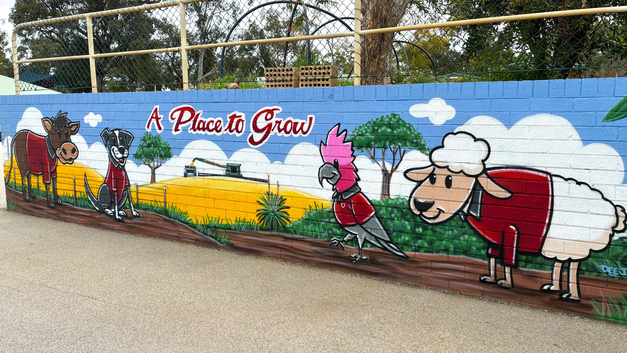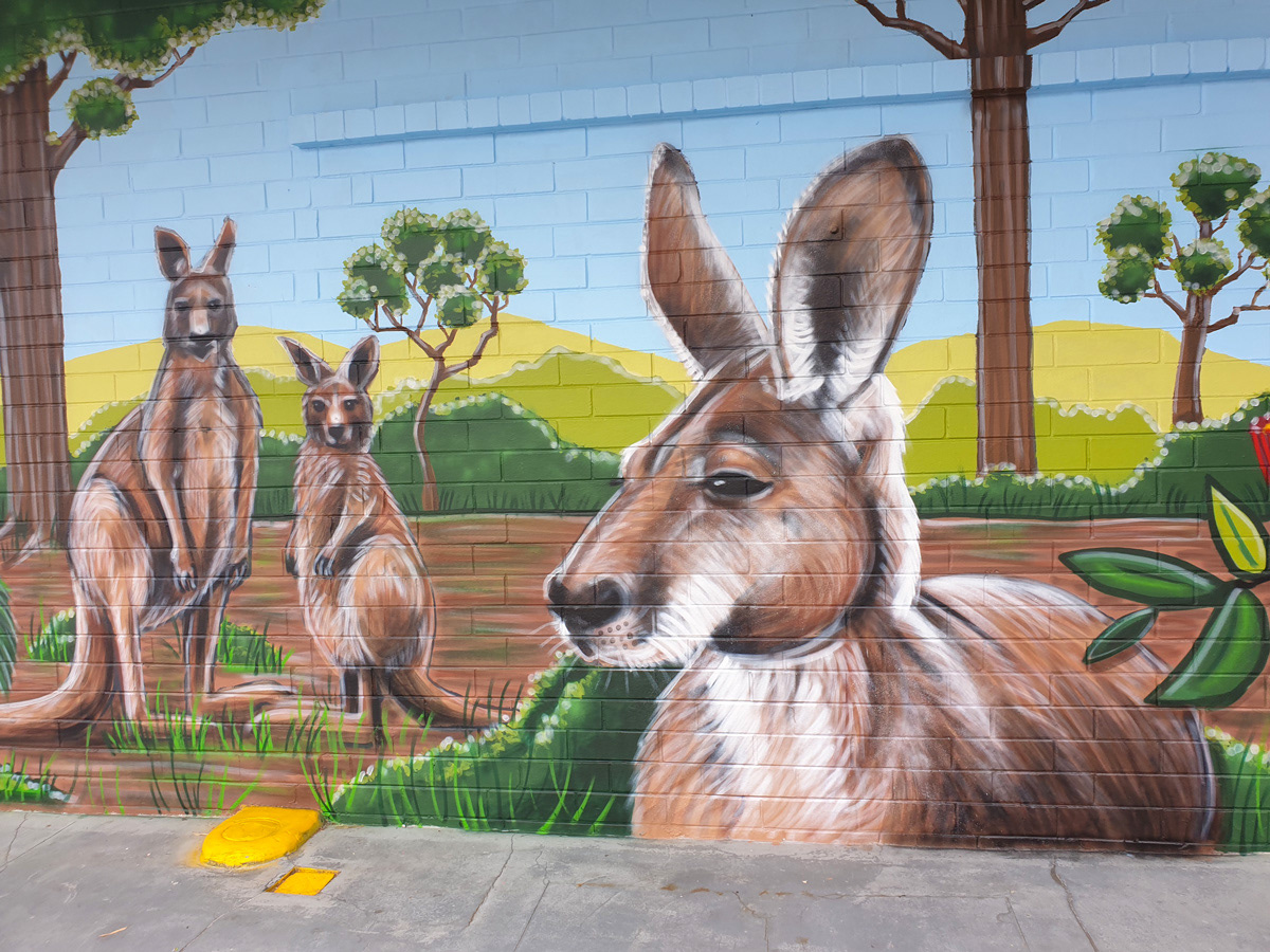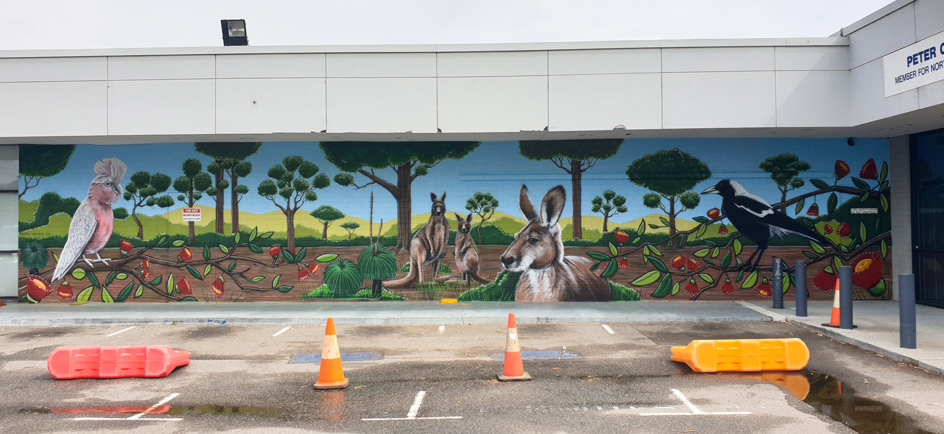 A mural I painted with students from Warwick SHS at Warwick Grove shopping centre. Done in a mix of brushwork and spray.